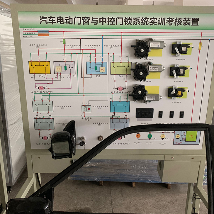 產品選用汽車電動車窗與中控門鎖系統(tǒng)實物,展示汽車電動車窗與中控門鎖系統(tǒng)的結構與原理;面板上繪有完整的電動車窗與中控門鎖系統(tǒng)的電路圖,設置有檢測端子,可通過儀器儀表檢測各種信號參數(shù)如電壓、電阻、頻率等。本示教板功能齊全、操作方便、安全可靠。