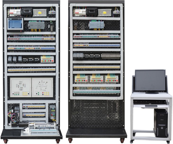 PLC可編程實(shí)驗(yàn)實(shí)訓(xùn)平臺,PLC實(shí)訓(xùn)裝置,PLC實(shí)訓(xùn)臺,PLC可編程實(shí)訓(xùn)考核裝置是集可編程控制器、通信編輯器、編程軟件、工控組態(tài)軟件、仿真教學(xué)軟件、模擬控制實(shí)訓(xùn)掛箱于一體,可直觀地進(jìn)行PLC的基本指令訓(xùn)練,多個應(yīng)用廣泛的PLC實(shí)際應(yīng)用模擬實(shí)訓(xùn)和實(shí)物控制實(shí)訓(xùn),同時也為了高層次的設(shè)計(jì)開發(fā)實(shí)訓(xùn)提供良好的條件。實(shí)訓(xùn)裝置還配備三相鼠籠異步電機(jī)、繼電器、變頻器能完成多個電氣控制實(shí)訓(xùn)。是專為職業(yè)院校及中職學(xué)校開設(shè)的可編程控制器技術(shù)及其應(yīng)用等課程實(shí)驗(yàn)配套設(shè)計(jì)的,可完成PLC編程控制器技術(shù)課程的相關(guān)教學(xué)實(shí)訓(xùn),是大中院校及中職理想的實(shí)驗(yàn)設(shè)備。