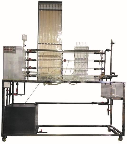 雷諾實驗管、伯努利實驗管、沿程阻力管、局部阻力管、水泵、秒表、玻璃溫度計、測壓計、刻度標尺、文丘里流量計、實驗水箱、計量水箱、蓄水箱、指示液盒、不銹鋼框架。