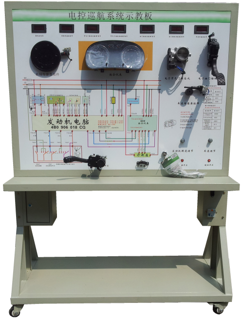 操縱油門踏板位置傳感器可實現(xiàn)節(jié)氣門開度的調(diào),可真實展示電子節(jié)氣門的工作原理和工作過程;操縱巡航控制開關和車速信號,設定巡航狀態(tài),引擎控制單元可對節(jié)氣門開度進行調(diào)節(jié),真實演示汽車電子巡航系統(tǒng)的工作過程和工作原理。