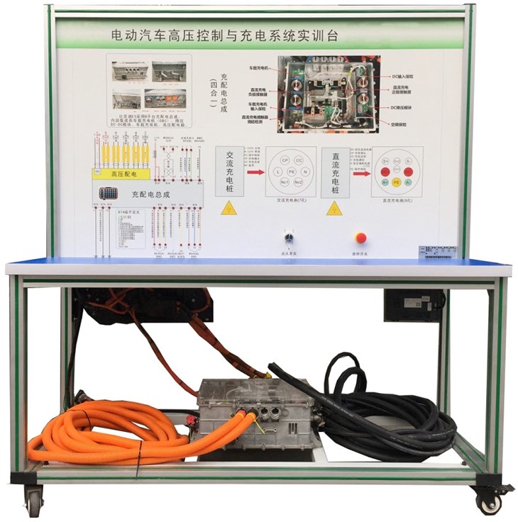 國標(biāo)充電槍與充電座、(北汽EV160純電動(dòng)汽車)高壓配電箱(帶各類高壓繼電器)、漏電傳感器模塊、絕緣傳感器模塊、安全維修塞模塊、漏電模擬操作單元、高壓安全系統(tǒng)操作單元、操作控制臺(tái)、訓(xùn)練控制按鈕、直流接觸器(包含充電繼電器、總正繼電器、總負(fù)繼電器、預(yù)充繼電器)、一體化全鋁合金型材搭建的移動(dòng)臺(tái)架(1500×700×1700mm 帶自鎖腳輪裝置,帶安裝檢測端子的原理面板,面板1448×940mm)、設(shè)備操作說明書。
