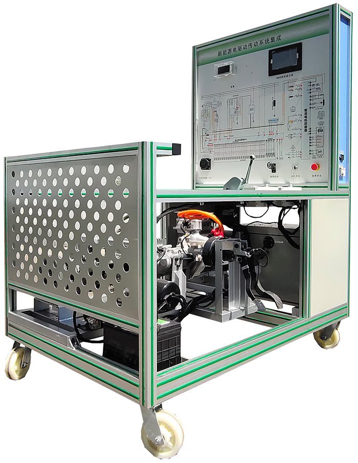磷酸鐵鋰動力電池包及管理系統(tǒng)(帶CAN通訊,含24單體電池,放電繼電器,充電繼電器,預(yù)充繼電器,預(yù)充電阻,霍爾電流傳感器,維修開關(guān),保險,充電接口,放電接口,低壓控制接口,動力電池采集模塊,BMS電池管理系統(tǒng)主控模塊,7寸液晶顯示屏)、驅(qū)動電機(jī)及運行部分、電子油門總成、換擋機(jī)構(gòu)總成、儀表(帶CAN通訊)、變速箱、左右傳動軸、左右前輪碟剎、磁粉制動器(左右)、手動張力控制器,助力器帶泵總成,真空泵總成、電動真空助力剎車系統(tǒng)、真空壓力傳感器、真空罐總成、國標(biāo)充電插口與充電槍、車載充電機(jī)(帶CAN通訊)、DC-DC模塊、故障設(shè)置系統(tǒng)、輔助蓄電池(12V45AH)、蓄電池斷電開關(guān)、急停開關(guān)、上位機(jī)軟件及數(shù)據(jù)線(電機(jī)與電池控制單元)、一體化全鋁合金型材搭建的移動臺架(1500×1000×1700mm ,帶自鎖腳輪裝置,帶安裝檢測端子的原理面板948×898mm)、故障考核系統(tǒng)、設(shè)備操作說明書。