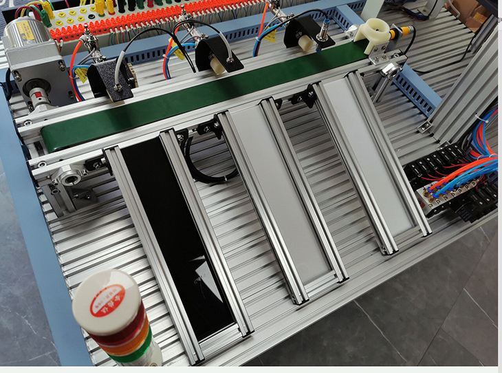 模塊、變頻器模塊、按鈕模塊、電源模塊、模擬生產(chǎn)設備實訓模塊(包含上料單元、皮帶輸送檢測單元、氣動機械手搬運單元、物料傳送倉儲單元)、觸摸屏、接線端子排和各種傳感器等組成。采用開放式和拆裝式結構,可根據(jù)現(xiàn)有的機械部件組裝生產(chǎn)設備,使整個裝置能夠靈活的按實訓教學或競賽要求組裝具有生產(chǎn)功能的光機電一體化設備。模塊采用工業(yè)標準結構及抽屜式模塊放置架,互換性強。