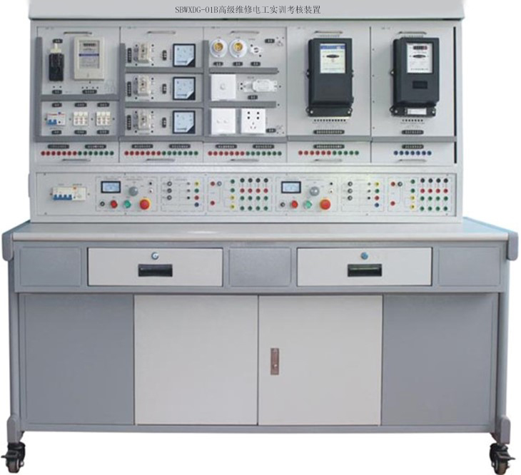 電氣安裝與維修實(shí)訓(xùn)考核裝置是根據(jù)工廠電氣安裝和室內(nèi)電氣安裝等維修 電工和電氣安裝工實(shí)訓(xùn)鑒定要求開發(fā)的一種通用實(shí)訓(xùn)平臺(tái)。 適合于各類職業(yè)院校 和技工學(xué)校維修電工、 電氣安裝工、水電工等有電氣實(shí)訓(xùn)要求的相關(guān)專業(yè)的作為 公共實(shí)訓(xùn)平臺(tái)使用。 采用鋼制網(wǎng)孔板和鋼制專用型材組接而成,安裝有自鎖式腳輪,方便移動(dòng)和使用。裝 置表面噴塑,色彩穩(wěn)重氣派。電氣安裝與維修實(shí)訓(xùn)裝置設(shè)計(jì)高度以人站在一級人字梯即可方便操作的高度,既安 全又能使使用者感受到施工現(xiàn)場環(huán)境。 橫向、 叢向?qū)挾群线m, 可以模擬現(xiàn)場線路的轉(zhuǎn)向布置。