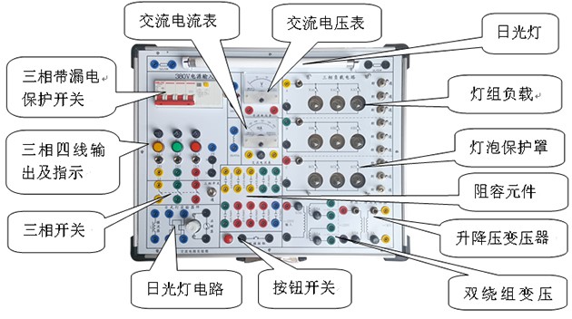 交流電路實(shí)驗(yàn)箱 主要是進(jìn)行"電工學(xué)"及"電路原理"中的強(qiáng)電部分實(shí)驗(yàn),如單相交流電路、三相電路、日光燈電路實(shí)驗(yàn)。本實(shí)驗(yàn)箱由模塊單元和元件庫(kù)相結(jié)合的板面構(gòu)成,全部采用歐洲標(biāo)準(zhǔn)的安全插座和安全實(shí)驗(yàn)導(dǎo)線(xiàn), 連線(xiàn)方便,接觸可靠,而且壽命長(zhǎng)、效率高,有效預(yù)防觸電隱患。實(shí)驗(yàn)面板上印有元件符號(hào)及主要參數(shù)便于學(xué)生識(shí)別。實(shí)驗(yàn)箱結(jié)構(gòu)緊湊實(shí)用直觀(guān),安全可靠,能有效培養(yǎng)學(xué)生的動(dòng)手能力,維修方便、簡(jiǎn)捷?蓾M(mǎn)足各類(lèi)高、中等院校及職業(yè)技術(shù)類(lèi)院校開(kāi)設(shè)的電工典型實(shí)驗(yàn)。