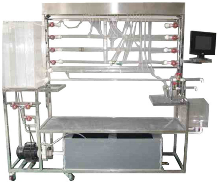 移動(dòng)式不銹鋼實(shí)驗(yàn)臺(tái)、儲(chǔ)水箱;雷諾測(cè)試管;伯努利測(cè)試管;沿程阻力系數(shù)測(cè)試管;突擴(kuò)、突縮測(cè)試管;閥門(mén)局部阻力系數(shù)測(cè)試管;孔板流量計(jì)測(cè)試管;文丘里流量計(jì)測(cè)試管;和皮托管測(cè)試管;測(cè)壓板直接顯示總水頭線(xiàn)和測(cè)壓管水頭線(xiàn);壓力傳感器24套、流量傳感器4套、溫度傳感器1套、觸摸屏、測(cè)壓板。
