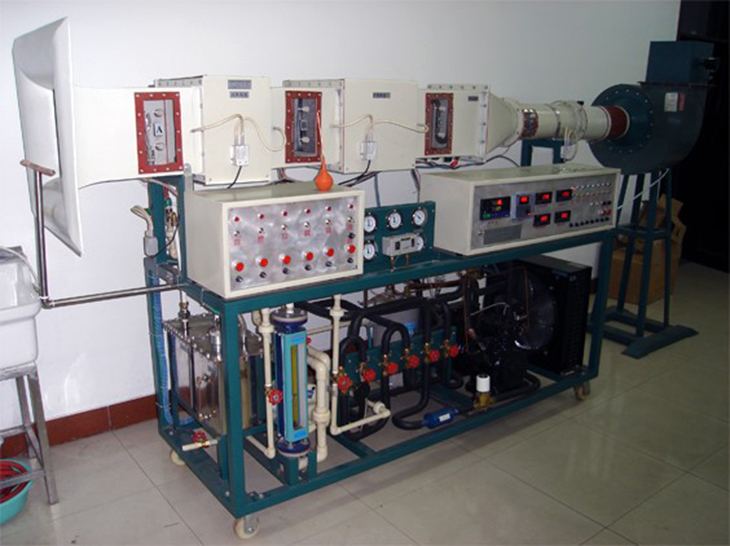 本裝置集直流空調,制冷壓縮機性能,制冷熱泵,表冷器性能,加熱器性能于一體,可進行空氣的加熱,加濕,冷卻,干燥,蒸發(fā)器,冷凝器進行換相,可測出各點溫度、濕度、壓力、風量、水流量及功率,計算出制冷量、功率、制冷系數、效率、并進行熱平衡計算。
