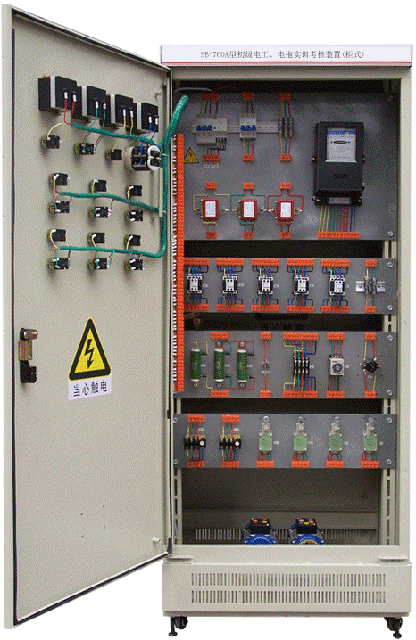 初級(jí)電工電拖實(shí)訓(xùn)考核裝置,初級(jí)電工考核柜,初級(jí)電工實(shí)訓(xùn)考核裝置是按照勞動(dòng)社會(huì)保障部頒發(fā)的“工人技術(shù)等級(jí)標(biāo)準(zhǔn)”和“職業(yè)技能鑒定規(guī)范”的內(nèi)容要求,根據(jù)初級(jí)電工培訓(xùn)考核的實(shí)際情況而設(shè)計(jì)的新一代集培訓(xùn)學(xué)習(xí)、理論驗(yàn)證、實(shí)際操作能力、考核鑒定于一體的多功能柜式設(shè)備。整臺(tái)設(shè)備以標(biāo)準(zhǔn)的電氣控制柜為主柜,利用柜體的雙面空間,布置電器 及配套實(shí)驗(yàn)器材,能完成初級(jí)電工考核鑒定中的電力拖動(dòng)控制與照明電路的實(shí)操項(xiàng)目,該電工、電拖實(shí)訓(xùn)考核裝置堅(jiān)持理論聯(lián)系實(shí)際的原則,突出技能訓(xùn)練,注重針對(duì)性、實(shí)用性、科學(xué)性,經(jīng)全國(guó)多家職業(yè)技能訓(xùn)練中心、職校、技校使用證明,該柜體設(shè)計(jì)合理、實(shí)操方便,占地面積少。為延長(zhǎng)電器的使用壽命,各電器的接點(diǎn)都與接線(xiàn)端子相連,再讓學(xué)生在接線(xiàn)端子上接線(xiàn),連接電機(jī)、電器來(lái)完成各項(xiàng)控制實(shí)驗(yàn),有效降低材料消耗,延長(zhǎng)使用壽命。該套設(shè)備適用于各勞動(dòng)職業(yè)技能鑒定部門(mén),同時(shí)適應(yīng)各大、中專(zhuān)、技校、職校初級(jí)電工、電拖專(zhuān)業(yè)教學(xué)與實(shí)訓(xùn)考核。