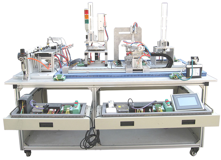 光機電氣一體化控制實訓平臺由由鋁合金導(dǎo)軌式實訓臺、典型的機電一體化設(shè)備的機械部件、PLC模塊、變頻器模塊、按鈕模塊、電源模塊、模擬生產(chǎn)設(shè)備實訓模塊、接線端子排和各種傳感器、計算機等組成。整體結(jié)構(gòu)采用開放式和拆裝式,實訓裝置用于機械部件組裝,可根據(jù)現(xiàn)有的機械部件組裝生產(chǎn)設(shè)備,也可添加機械部件組裝其他生產(chǎn)設(shè)備,使整個裝置能夠靈活的按教學或競賽要求組裝具有生產(chǎn)功能的機電一體化設(shè)備。模塊采用標準結(jié)構(gòu)和抽屜式模塊放置架,互換性強;按具有生產(chǎn)性功能和整合學習功能的原則確定模塊內(nèi)容,使教學或競賽時可方便的選擇需要的模塊。設(shè)備需完全符合電工電子全國職業(yè)技能大賽所要求,同時還要求具有可拓展功能,可以組成更加大型的生產(chǎn)模擬系統(tǒng),以配合各個用戶學校不同層次,不同專業(yè)的教學及培訓要求。
