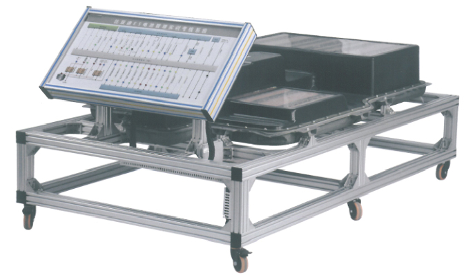 動力電池包及BMS總成、緊急斷電開關(guān)、維修開關(guān)、霍爾電流傳感器,直流接觸器(包含充電繼電器、總正繼電器、總負繼電器、預(yù)充繼電器),放電控制繼電器與放電負載,單體電池充電器,一體化全鋁合金型材搭建的移動臺架(1500×700×1700mm 帶自鎖腳輪裝置,帶安裝檢測端子的原理面板,面板1448×940mm)、設(shè)備操作說明書。