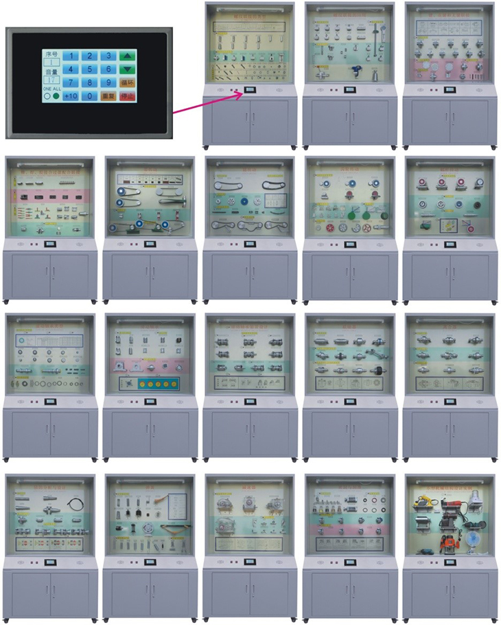 機械設(shè)計零件陳列柜,是根據(jù)機械設(shè)計(零件)課程基本要求設(shè)計制造的實驗設(shè)備。陳列柜通過機械零件模型或?qū)嵨,配合相?yīng)的圖文資料,形象地展示與解說機械設(shè)計的基本知識,加強學(xué)生對通用機械零件的類型、結(jié)構(gòu)特點及其設(shè)計的感性認(rèn)知,為進一步學(xué)習(xí)機械設(shè)計奠定基礎(chǔ)。