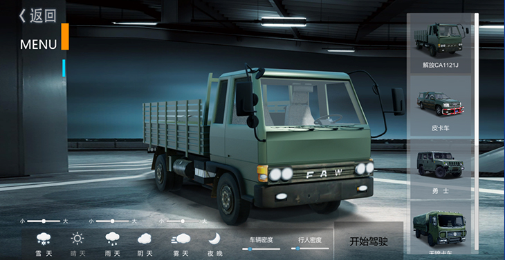 圖二十:天氣、車(chē)輛、行人自由切換功能界面