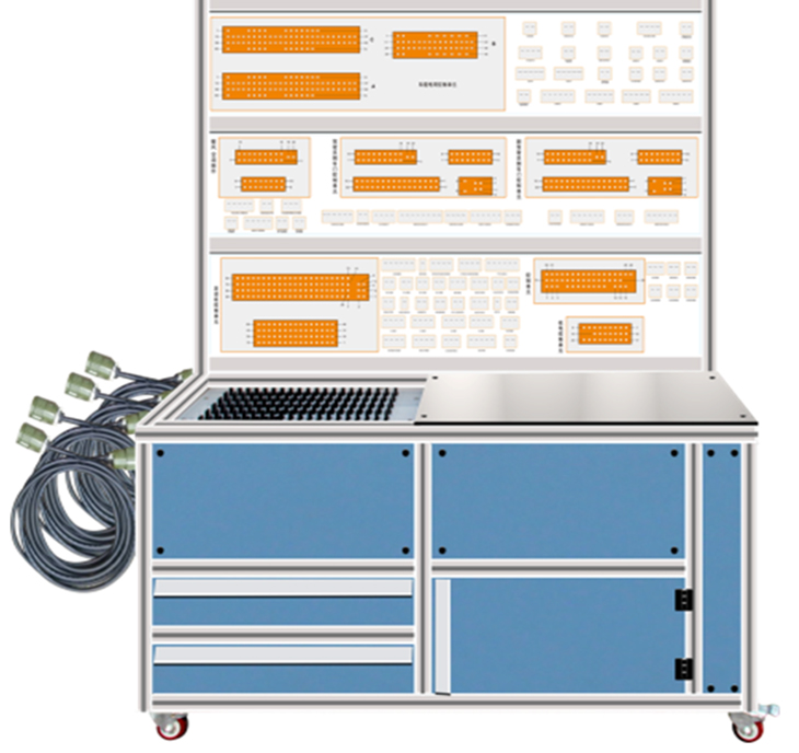 2、通過裝有與原車插頭配套插接器的線束,連接故障設(shè)置終端,故障設(shè)置終端通過專用線束連接檢測臺,實(shí)現(xiàn)整車各系統(tǒng)電路教學(xué)、實(shí)訓(xùn)考核的多功能教學(xué)設(shè)備;