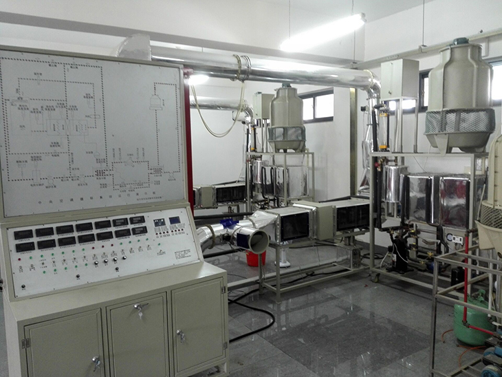 (1)具有蒸汽壓縮式集中式和半集中式中央空調(diào)系統(tǒng)的功能,主要由冷源系統(tǒng)、熱源系統(tǒng)、空氣處理及配送系統(tǒng)及控制與顯示系統(tǒng)等組成?蓾M足學(xué)校既能開出驗(yàn)證性實(shí)驗(yàn),也可以開設(shè)故障設(shè)置性實(shí)驗(yàn)滿足畢業(yè)設(shè)計(jì)、教師科研、創(chuàng)新實(shí)驗(yàn)室所需,能實(shí)現(xiàn)一機(jī)多用。