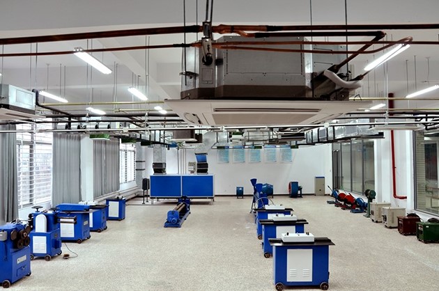 3.組合式空調(diào)機組、新風機組、風機盤管、冷卻塔、風機、消聲器、多聯(lián)機、滾剪機、咬口機、卷圓機、合縫機等主要設(shè)備,組成一次回風式空調(diào)系統(tǒng)、新風加風機盤管空調(diào)系統(tǒng)、排風系統(tǒng)、多聯(lián)機空調(diào)系統(tǒng)等四個系統(tǒng),可以承擔組合式空調(diào)機組安裝、冷卻塔安裝、新風機組安裝、風機盤管安裝、風機安裝、多聯(lián)機安裝、風口安裝、風管制作等8個實訓項目。