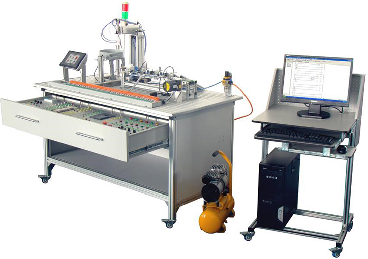 光機電氣一體化控制實訓系統(tǒng)"是依據(jù)機電一體化教學的要求而精心研制的。它在接近工業(yè)生產(chǎn)制造現(xiàn)場基礎上又針對教學及實訓目的進行了專門設計,強化了機電一體化的安裝與調(diào)試能力。實訓裝置由型材導軌式實訓臺、典型機電一體化設備機械部件、PLC
