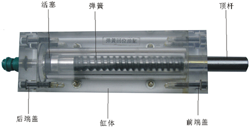 2、彈簧回位油缸的缸體,端蓋等均采用了進口透明有機玻璃材料精制而成,透明清晰,頂桿采用45#中碳鋼材料,并配合油接頭、密封圈、內(nèi)六角螺絲等標準件裝配而成,通過它可明確地觀察到活塞、頂桿、油封、油孔、彈簧等結(jié)構(gòu)及其運行過程,具有形象逼真,性能可靠等腰三角優(yōu)點,它即可作為教學(xué)模型,也可作為液壓實驗元件進行實驗演示。