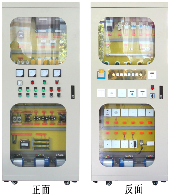 2、電氣柜體正面內(nèi)安裝賓館及公寓內(nèi)部單相電氣控制電路,主要包括賓館客房及公寓住宅全套單相電照明及電器插座模塊(含專用控制面板)同時(shí)還配備各種弱電信息模塊。學(xué)生通過各種不同的線路連接,既能進(jìn)行一些諸如請(qǐng)勿打擾電路安裝等小課題的實(shí)訓(xùn),也能進(jìn)行一些諸如客房全套電器安裝及故障設(shè)置和排除等綜合性課題的實(shí)訓(xùn)。
